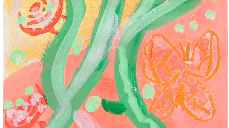 翼がついている天使のような花があったらいいなと思って描きました。花が飛んでいるところを想像すると笑顔になってきます。