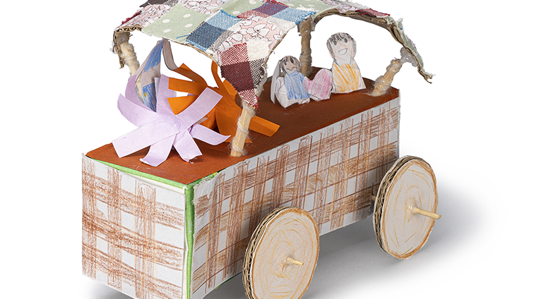 段ボール・色紙・絵の具・毛糸・割り箸・ペットボトルキャップなど/12×17×19cm/奈良県