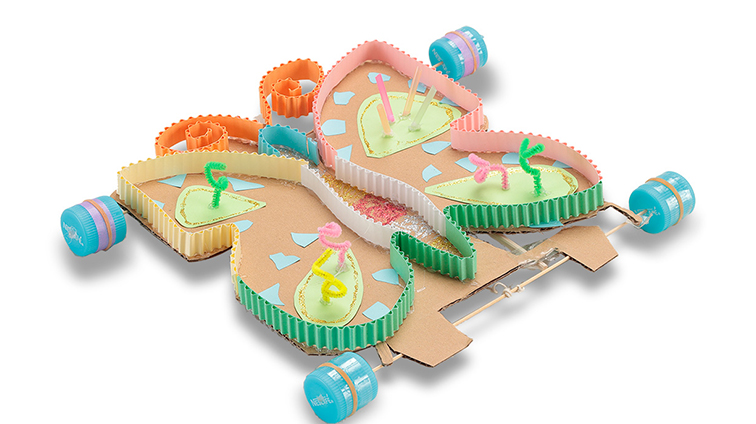 段ボール・片面波段ボール・色画用紙・割り箸・竹串・ペットボトルキャップ・モール・マスキングテープ・ストローなど/5.5×32.5×28cm/神奈川県