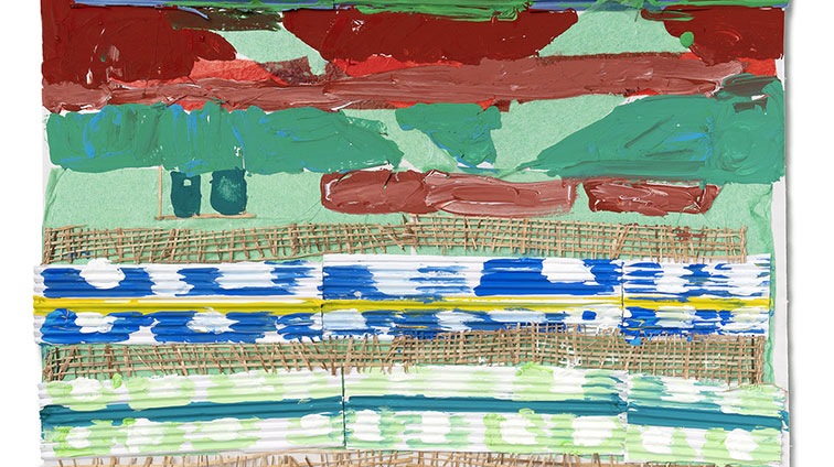 白段ボール・片面波段ボール・麻布・絵の具など/38×54cm/東京都