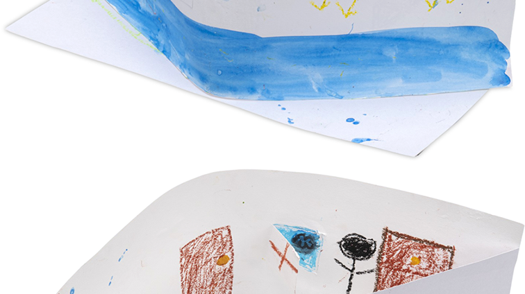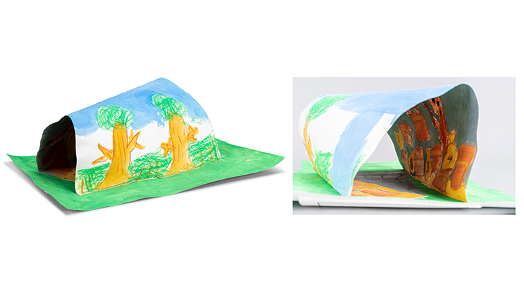 画用紙を折りたたんでも折りたたんでなくても作品が見れるように作りました。