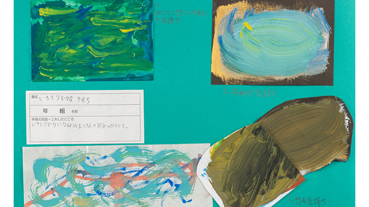 貼るのにも、イメージした気持ちを表しました。いろんな色をまぜたりしました。