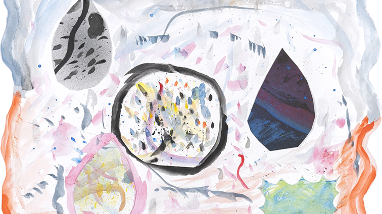 白い線は喜び、楽しみなどを表し、茶色の線は、悲しみなどを表します。「喜怒哀楽」の4つが混ざり、新しい感情が生まれ、広がっていくことを絵で表しました。