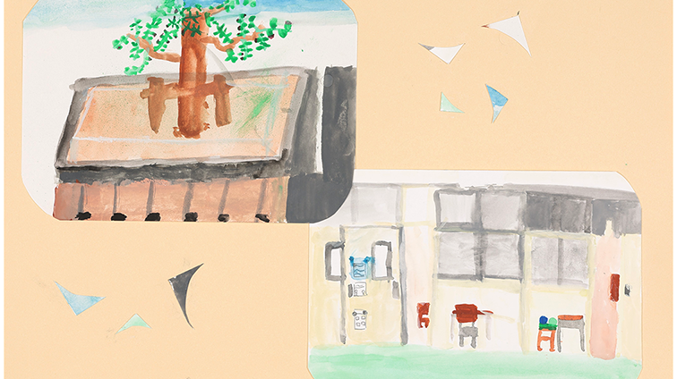 画用紙・絵の具・色鉛筆・パステル/(左)26.5×26.5cm、(右)27×19cm/東京都
