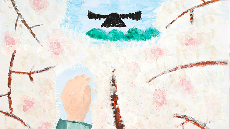 大造じいさんの手だとわかるようにしわをつけたり、桜が満開な様子を、ふでの使い方を工夫してかきました。