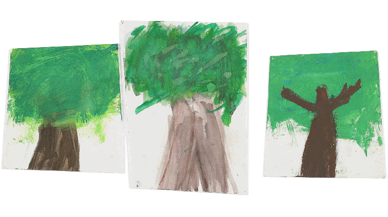 みどり色っぽいイメージだったから、画用紙の色もみどりのグラデーションにして色を合わせました。